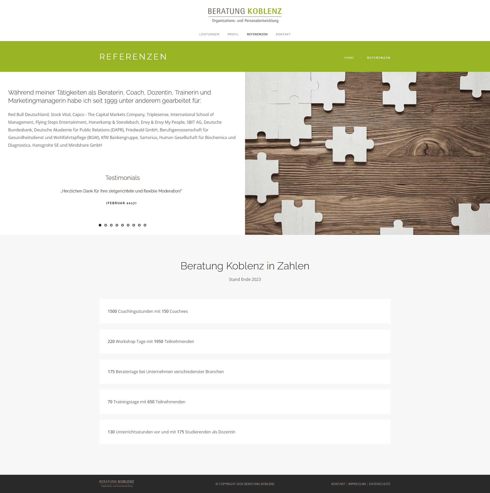 Unser jüngstes Projekt bei der Webdesign Agentur war die Entwicklung einer kleinen Bootstrap Webseite für ein renommiertes Business-Coaching-Unternehmen in Frankfurt. Unser Ziel war es, eine Plattform zu schaffen, die nicht nur die Philosophie und Methodik des Unternehmens widerspiegelt, sondern auch eine intuitive Benutzererfahrung für Besucher bietet. Wir haben eng mit dem Kunden zusammengearbeitet, um ein tiefes Verständnis für die spezifischen Bedürfnisse und Ziele des Unternehmens zu entwickeln. Durch diese Zusammenarbeit konnten wir eine maßgeschneiderte Lösung bieten, die sowohl funktional als auch ästhetisch ansprechend ist. Die Herausforderung lag darin, eine Balance zwischen einem professionellen, seriösen Erscheinungsbild und einer einladenden, benutzerfreundlichen Oberfläche zu finden. Unsere Lösung war ein klares, minimalistisches Design mit einem fokussierten Farbschema, das die Markenidentität des Unternehmens stärkt, während es gleichzeitig einen nahtlosen Zugang zu wichtigen Informationen bietet.